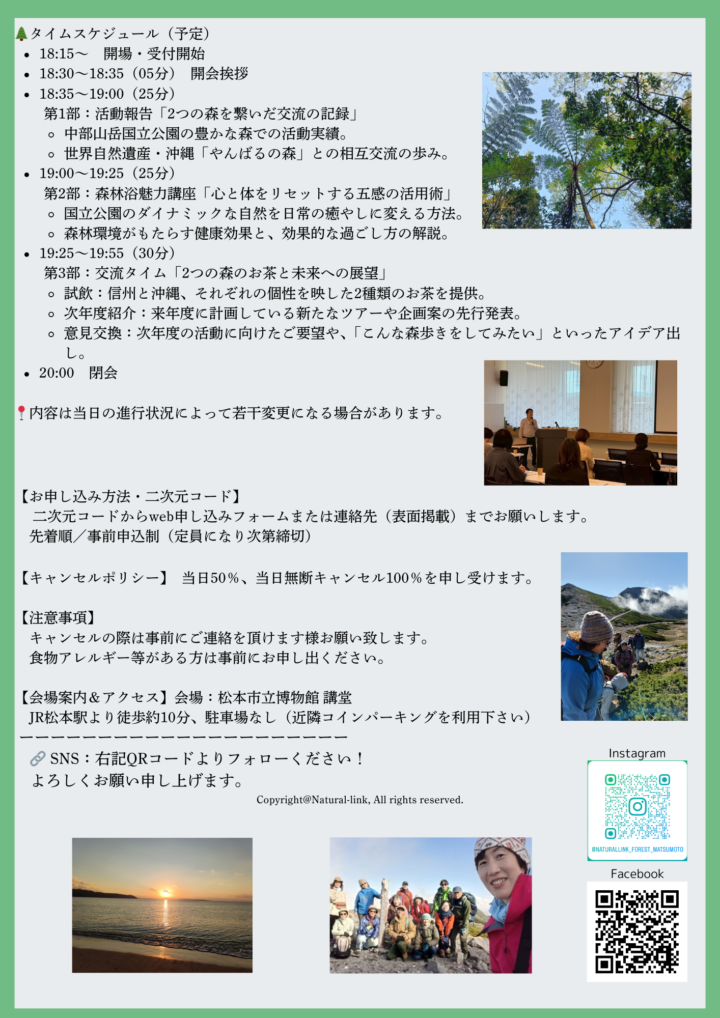 協力:国頭村森林セラピー協会、松本市立博物館 指定管理会社 株式会社フクシ・エンタープライズ